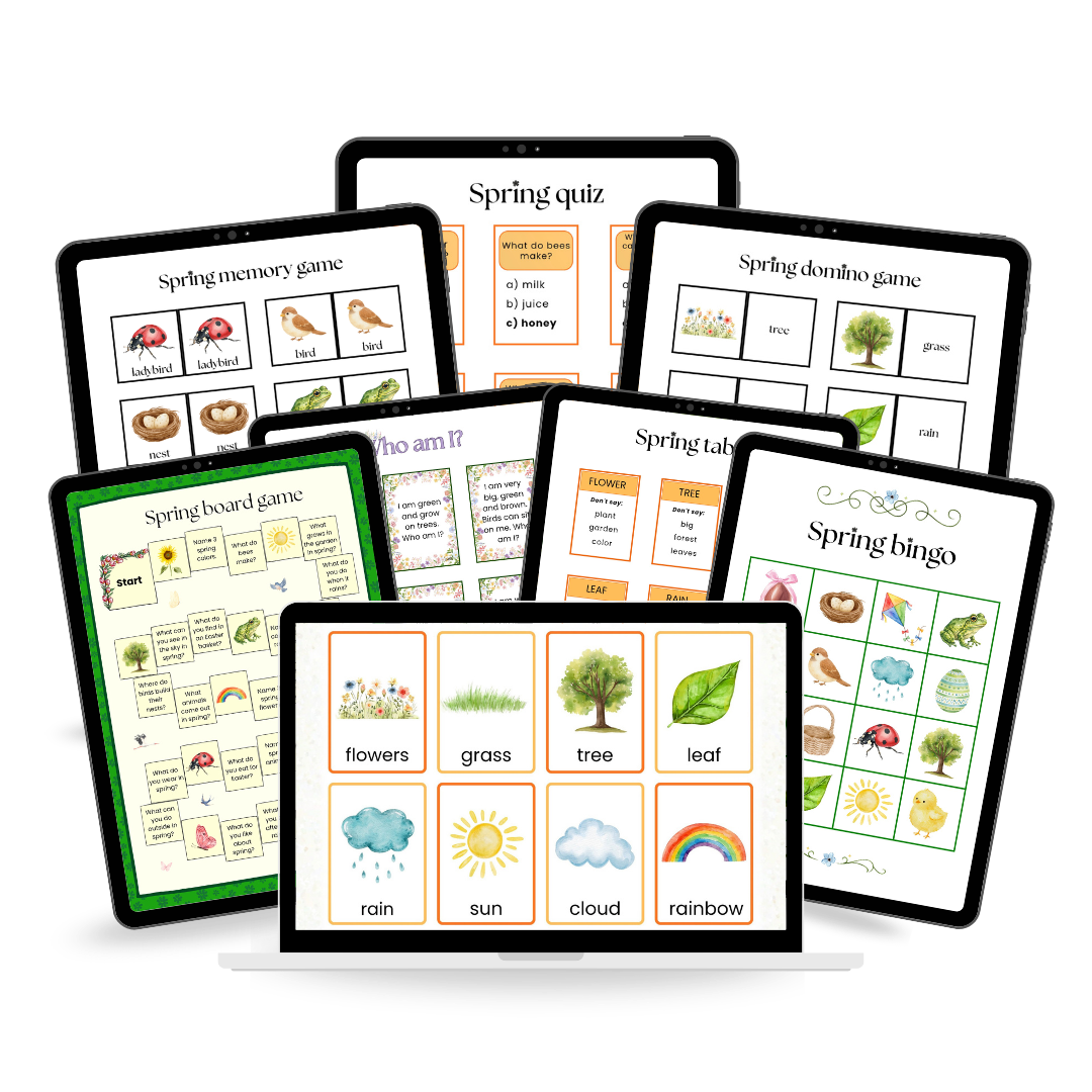 Spring Bundle to kompletny zestaw gier językowych o tematyce wiosennej, który pomaga dzieciom uczyć się angielskiego w naturalny i angażujący sposób.